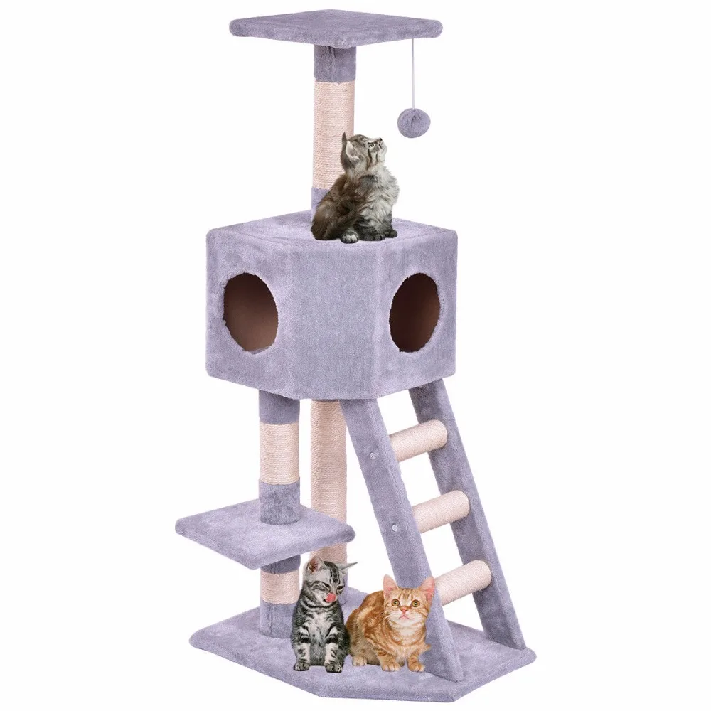 Pet Cat Climbing Tree With Ladder Play House Tower Condo Bed Cats Scratching Posts Kitten Wood Cat