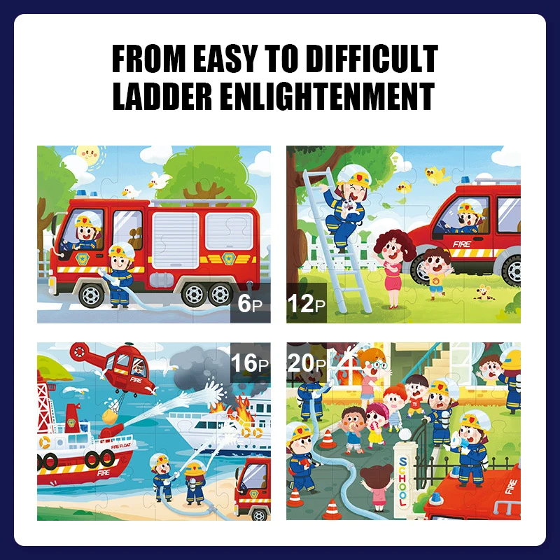 Children 4 in 1 Paper Puzzles Toys Ladder Puzzles Seasons Transport Undersea Firemen Insect Kinderg
