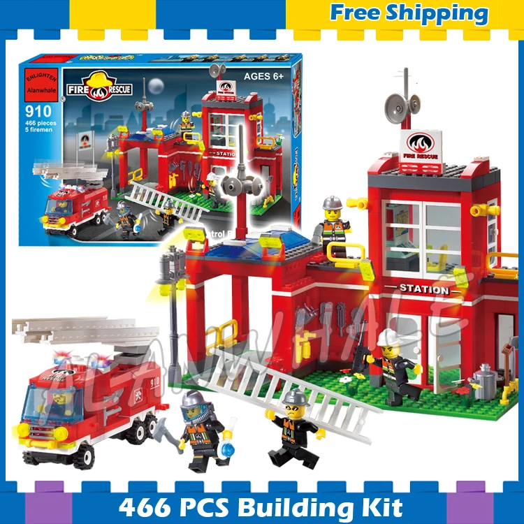 BEST 466pcs City Fire Control Branch Bureau Rescue Ships Middle Station ladder 910 Model Building Blocks