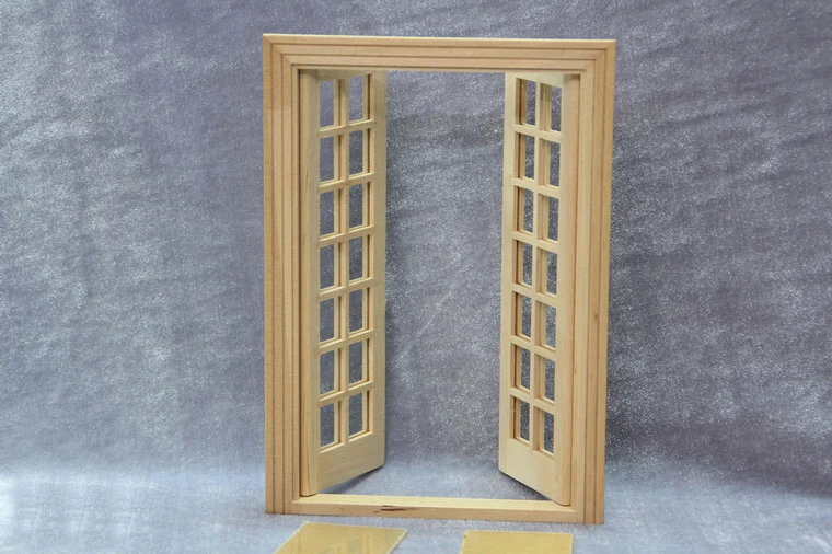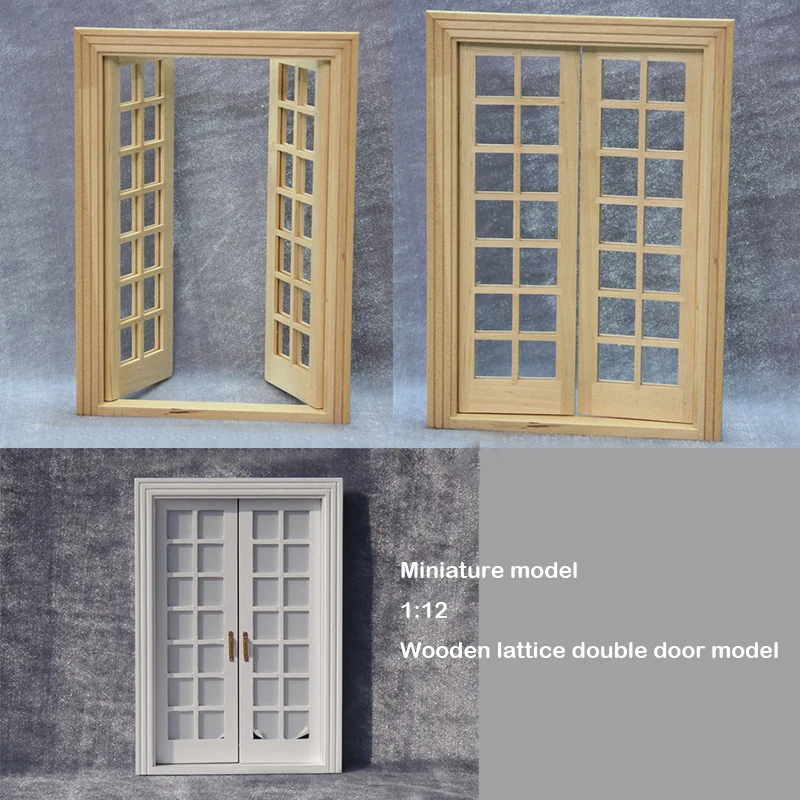Best Quality Miniature model 1:12 Wooden lattice double door model Sand table building model materials