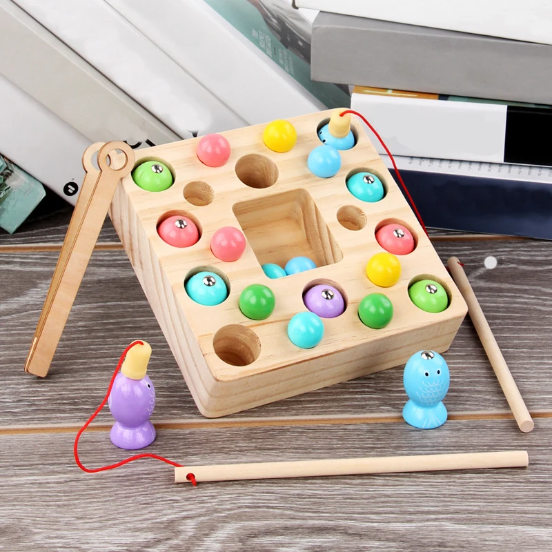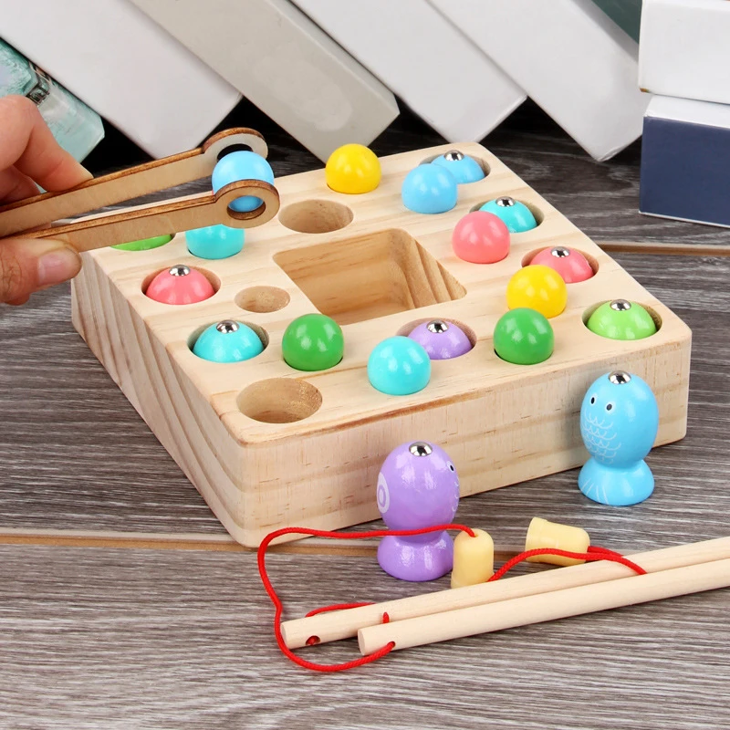 HIGH QUALITY Montessori Wooden Fish Magnetic Fishing Game Set Material Hand Brain Training Early Learning Thinki